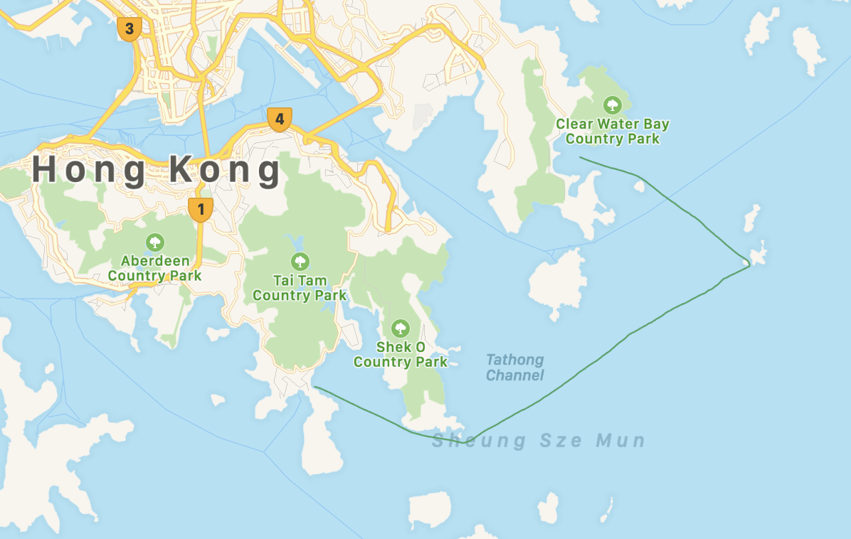 Head out of Clearwater Bay, staying north of Steep island, then head for the south end of the 9 Pins islands.