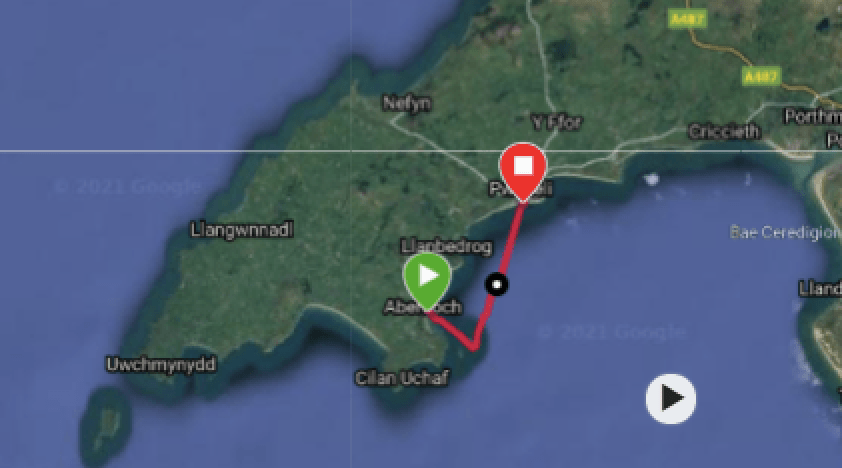 Head out from the beach to between the St. Tudwal's (give Bear Grills a wave as he owns the lighthouse on one) islands and turn towards the obvious white buildings of Pwllheli (north-easterly).