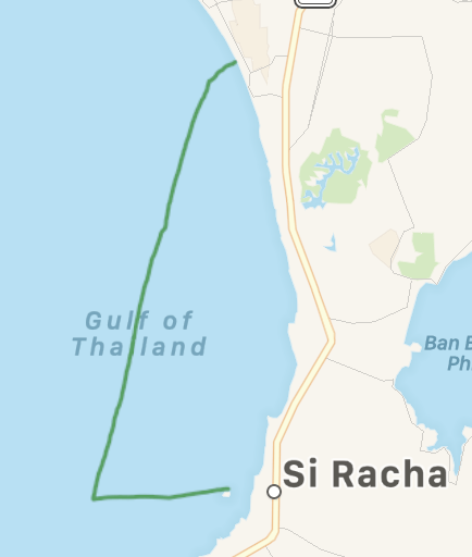 Start at Ko Loi aim towards the Middle of Ko Si Chang 3.5km in there will be yellow buoy, turn downwind and enjoy your 12km downwind fun.
