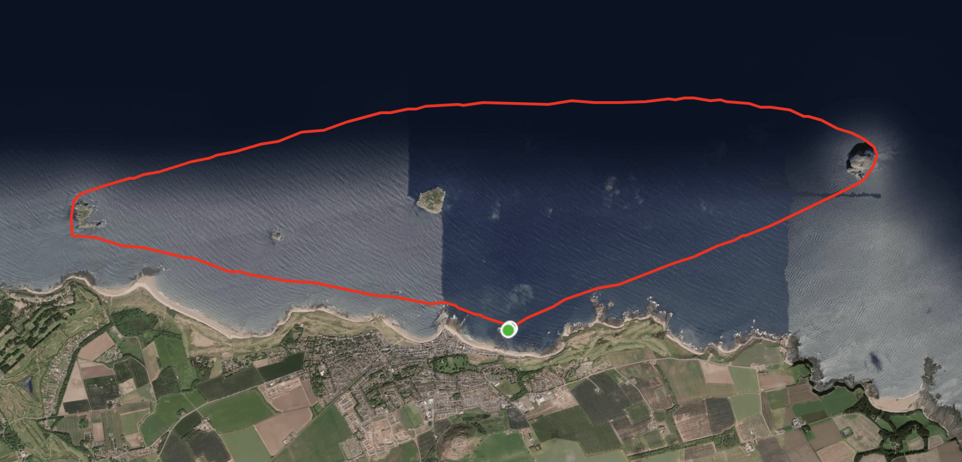 The Bass Rock which has one of the largest populations of Gannets and Fidra are the "turning buoys".