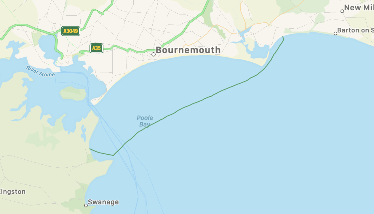 Google Maps: South Beach, S W Coast Path, Studland, Swanage BH19 3AN, United Kingdom