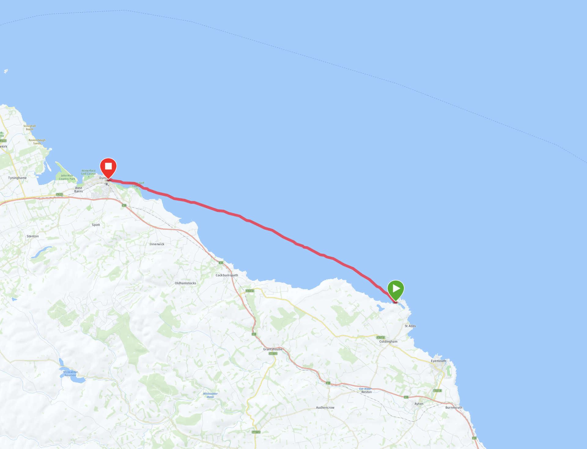 Coastline between Pettico Wick and Pease Bay is spectacular and very committed with no easy landing options. Not for beginners.
